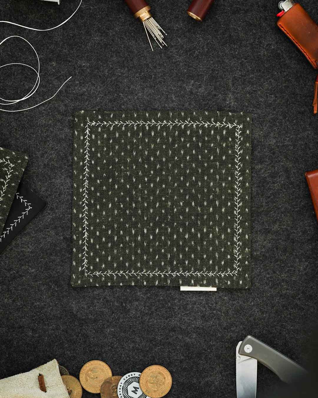 Speck EDC Hank is handmade from Kasuri, one of Japan’s most traditional fabric styles. Kasuri from the region of Kurume is distinctive with vertically and horizontally dyed threads woven together to form intricate, complex patterns. The result is a fabric rich in visual depth, offering exceptional comfort that will only improve over time.