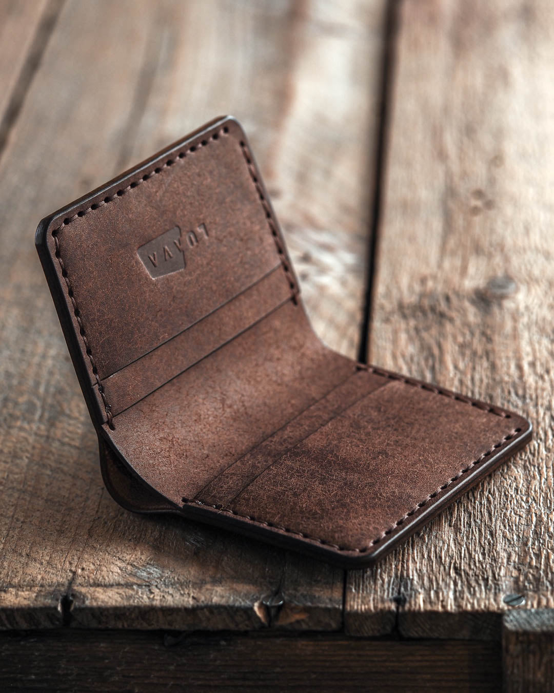 NERO Wallet is a handmade leather bi-fold wallet for men and women. It carries all you need - 4-8 cards and unfolded cash (for example EUR, USD). It will serve as a regular leather wallet for decades as this leather only gets better over time.